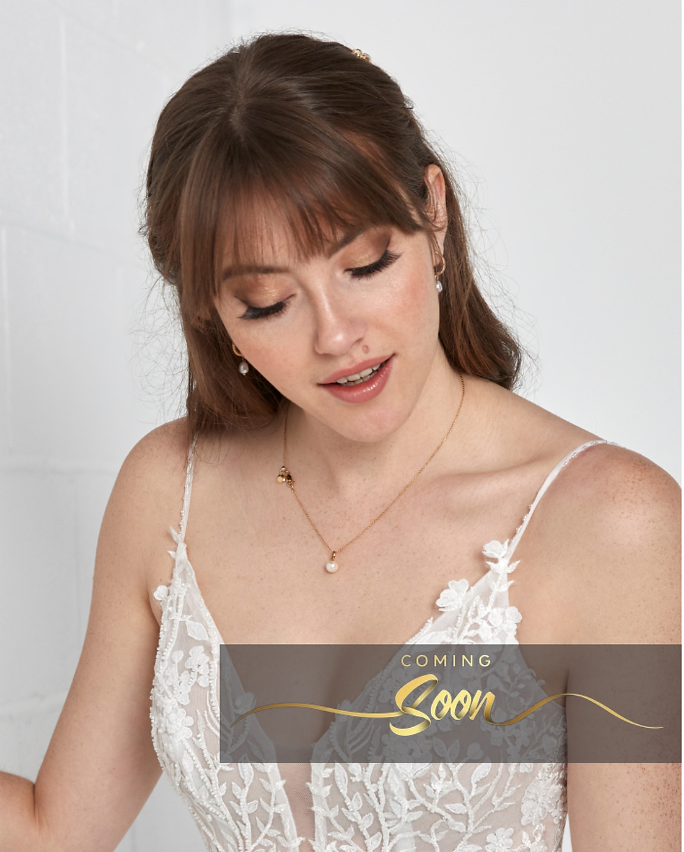 Bryce is the definition of effortless elegance. The corset-style bodice is framed by pearl-detailed off-the-shoulder straps that gently highlight the bustline, while a V-shaped waistband beautifully defines the waist. The A-line skirt flows into a soft, romantic train, creating a silhouette that feels timeless and refined. Designed for the bride who appreciates subtle detail with lasting impact.